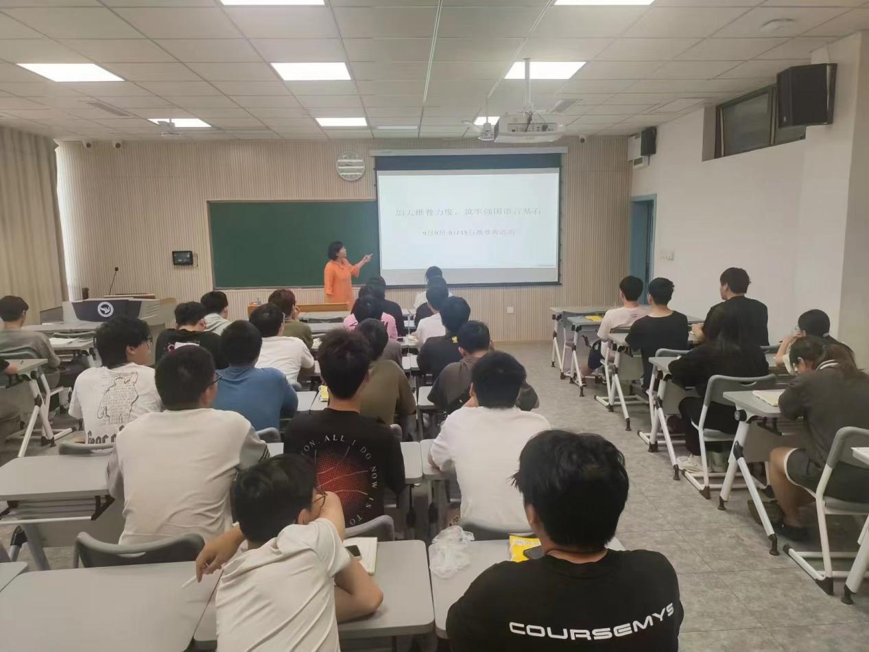 为了进一步强化普通话的推广力度,学院各班级还组织了以“加大推普力度,筑牢强国语言基石”为主题的班会活动。每班选出一名推普员,负责在班级内宣传普通话的重要性,并组织学习《中华人民共和国国家通用语言文字法》的核心内容。这一举措不仅形成了强大的宣传力量,还有效激发了学生学习和推广普通话的热情,广泛普及了普通话知识。
