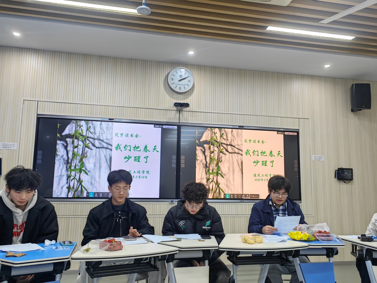 3月14日下午,建筑工程学院在望道楼303举办了一场主题为《我们吵醒了春天》的筑梦读书会,活动邀请了图书馆馆长和建工学院党委负责人参加,活动旨在以阅读为纽带,同学们迎接春天的到来,畅谈梦想与未来。